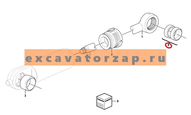 Втулка VOE11709910 в верхнюю проушину гидроцилиндра челюсти экскаватора погрузчика Volvo BL61, BL71