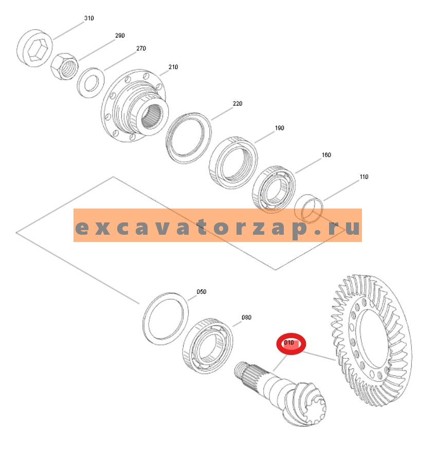 Главная пара 4472.216.008, 4472216008, 4472-216-008 (аналог, Турция) переднего, заднего мостов экскаватора HYUNDAI R170W-3, R170W-3, R1700